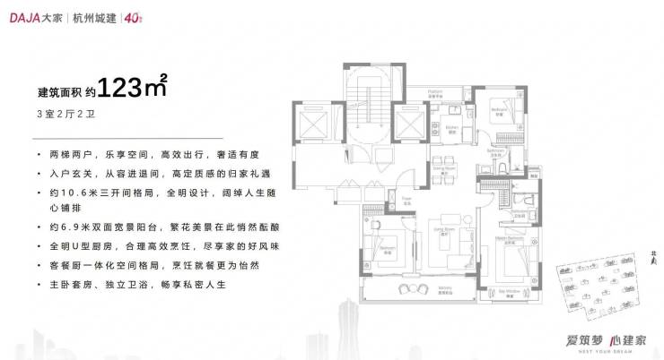 123㎡三居室:三开间朝南,6.9米双面宽阳台,总价约300-350万元;