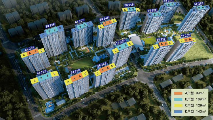 143㎡ 18,600–19,200元/㎡ 270万–278万元 260万–268万元 3+X灵活布局,可改四房,13.3米南向景观面