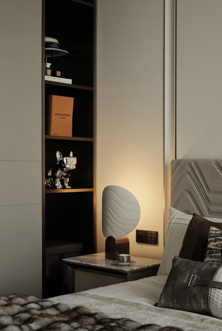作为与房间主人最紧密链接的空间,主卧设计对于展现其品位、格调、审美等多样精致需求的标准更为具象。真皮包裹的墙面让房间内部的光线变得沉稳而内敛。便是其拥有的全套房设计,并且都带有独立的生活空间,包括主卫及个人衣帽间。保证了家庭成员适合的交流尺度,进可以全家交流,退可以互不干扰。
