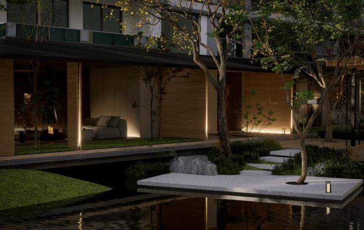 设计美学:融合苏式灰白立面与现代玻璃幕墙,园林灵感源自苏州网师园