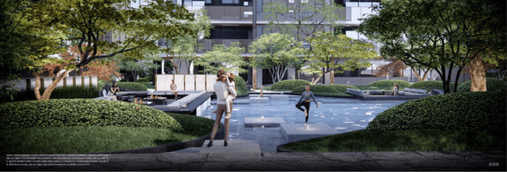邻近独墅湖、白鹭园湿地公园(23万㎡),社区内打造“双轴五境”园林景观,含镜面湖水系及黑松主题园林