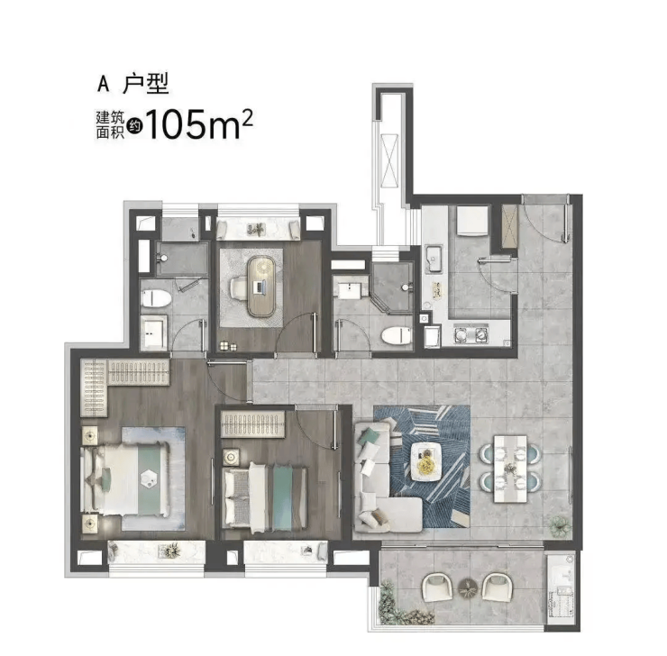 高层105㎡:3房2厅2卫