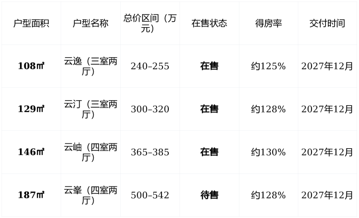 ✅ 温馨提示 :108–146㎡主力户型余量有限,187㎡顶配户型预计2026年Q2加推,建议优先锁定南向院馆户型。