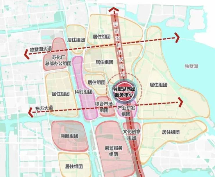 五横两纵路网:金鸡湖大道、东环、娄江快速路、独墅湖大道、常台高速、南环