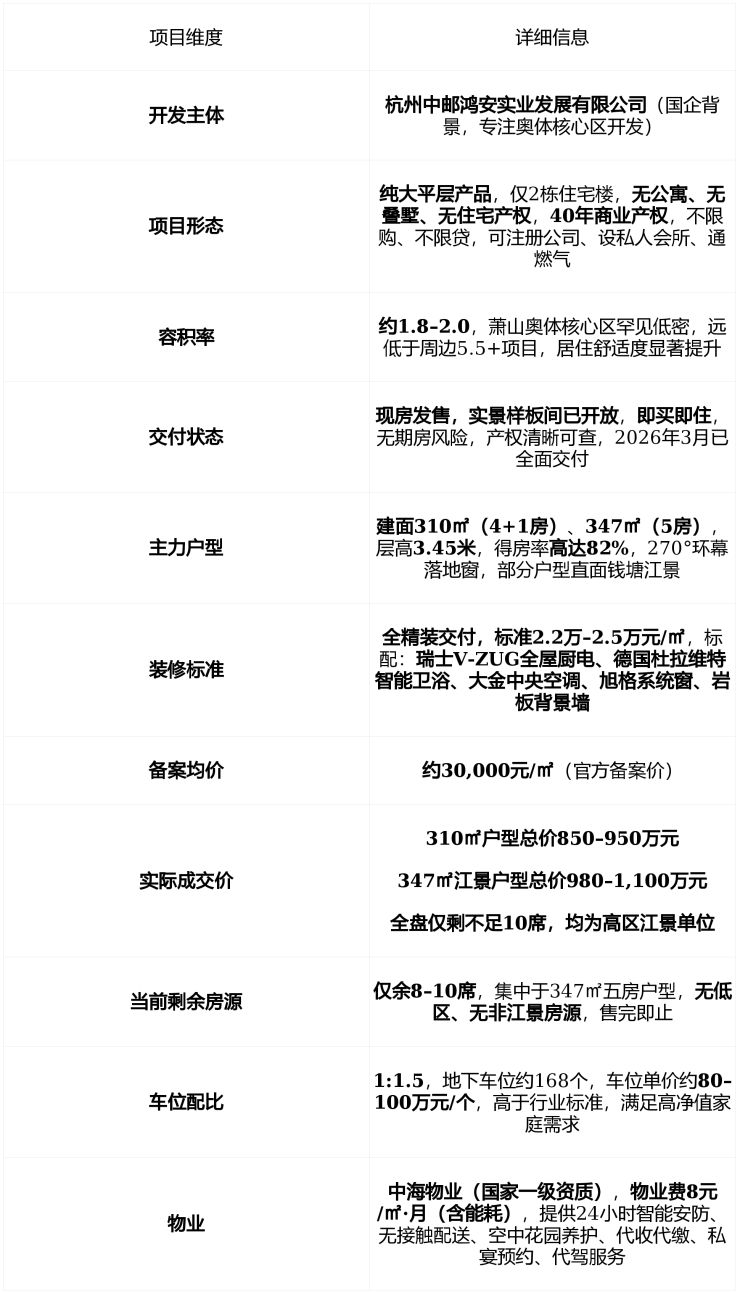 📌 购房提示 :这不是普通住宅,是 城市核心的资产容器 。40年产权≠贬值,它是 杭州奥体唯一能与上海瑞虹天地媲美 的TOD现房资产。 3万/㎡不是便宜,是稀缺溢价 。现房即享, 买的是未来十年的硬通货与生活主权 。