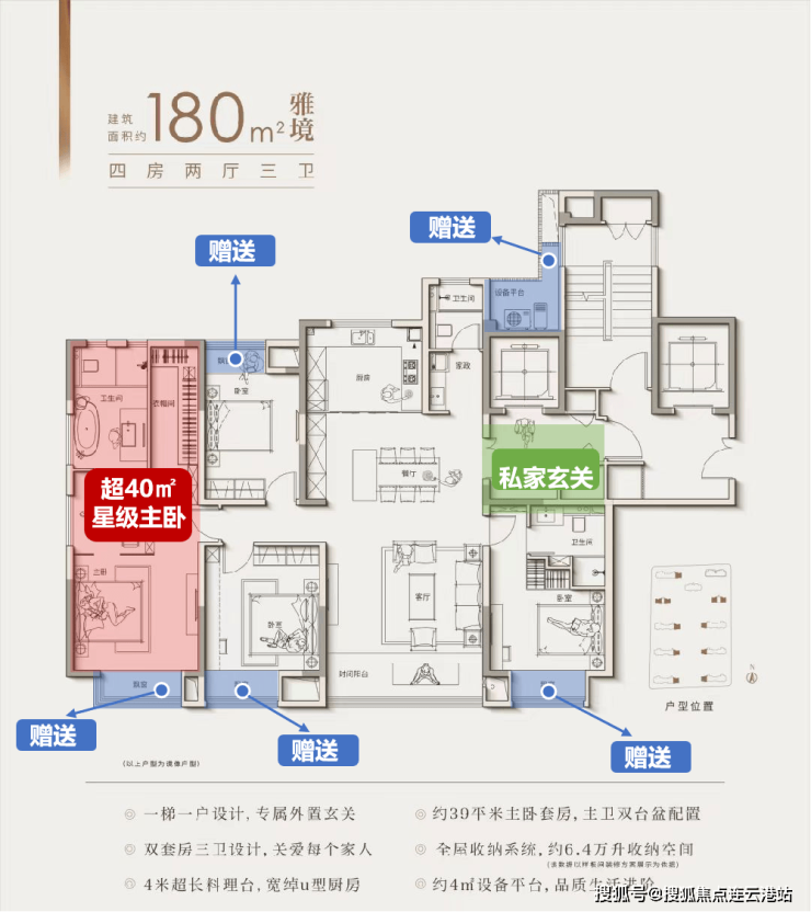 180㎡四房:双套房布局,设备平台可容纳7件家电