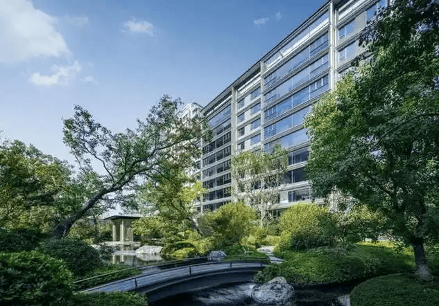 社区园林:采用"三进四院"东方园林布局,移植价值70万元的黄山造型油松,打造1600㎡水系景观