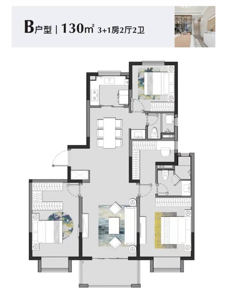 建面 130㎡3 居:位于 69#、68#、70#,2 梯 2 户,15 层小高层,层高 2.90 米,科学布局实现动静分区,生活与休息互不干扰。