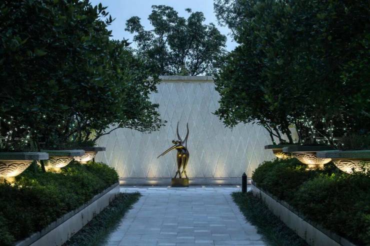 顶级配置:金色铝板+天然石材外立面,6米架空层,全石材风雨连廊