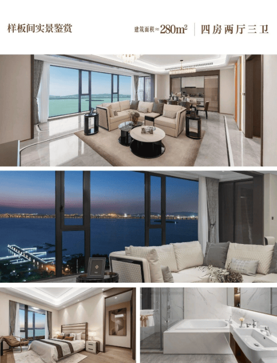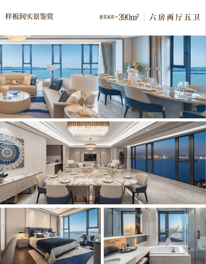 一线湖景资源:距东太湖生态园仅百米,366-390㎡户型均配置全景落地窗