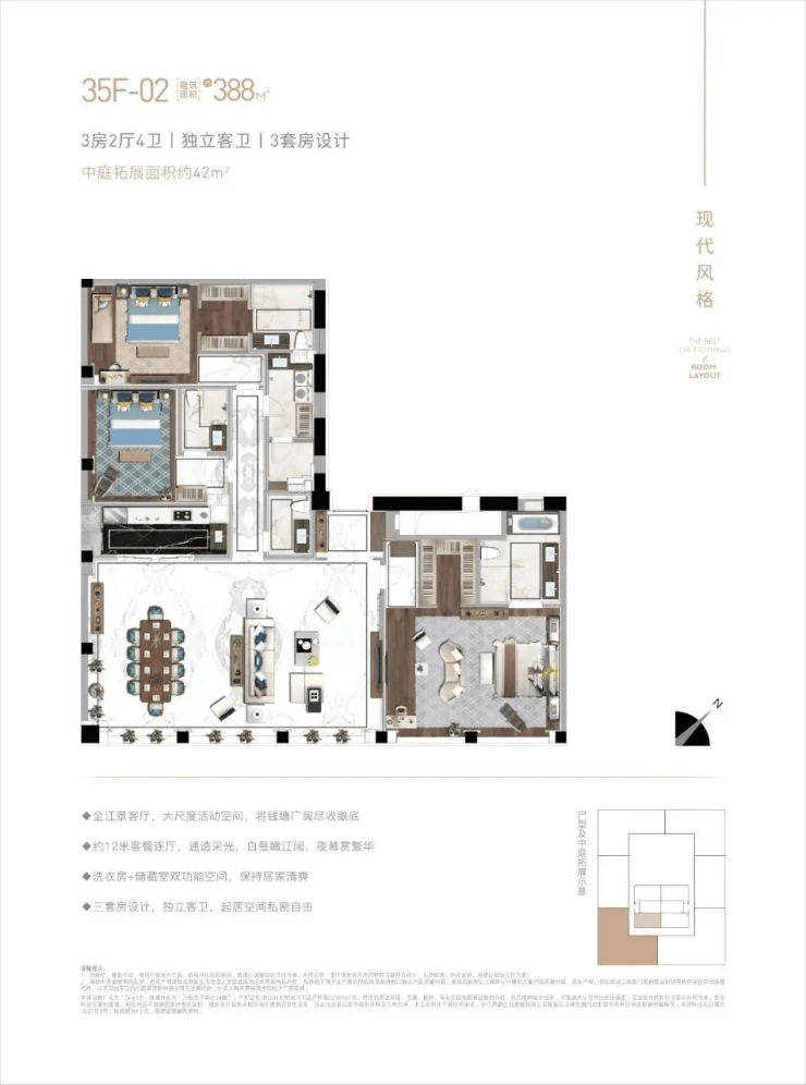 3.4米:现代轻奢风格,适用于244–279㎡户型