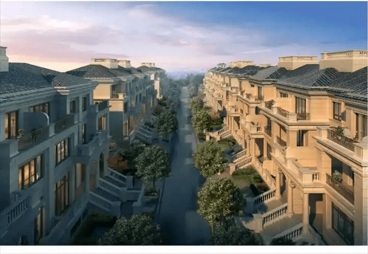 项目采用 法国古典主义建筑风格,承袭凡尔赛宫殿园林设计理念,立面以 石材干挂、对称布局、坡屋顶、雕花立柱等元素还原法式贵族气质。