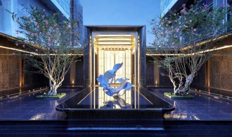 ·产品设计:外立面采用浅灰/金色铝板+玻璃幕墙,搭配下沉式庭院会所+500㎡儿童乐园。