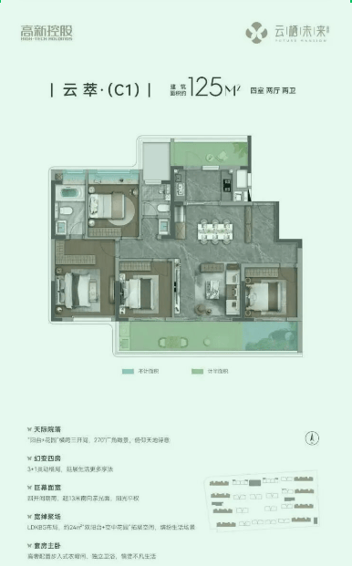 143㎡主力户型得房率超95%,主卧配独立卫浴与步入式衣帽间,空间利用率行业领先