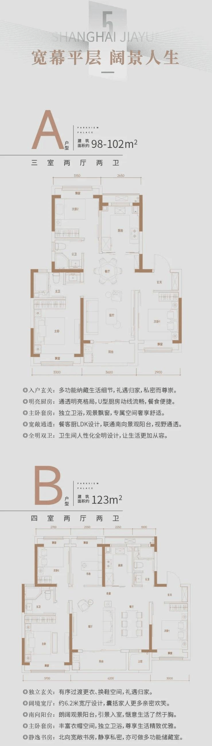 【佳运·瑞璟湾】产品为建面约98-166㎡3-4房,得房率高达约78%,相比常规户型72-75%得房率要更高。