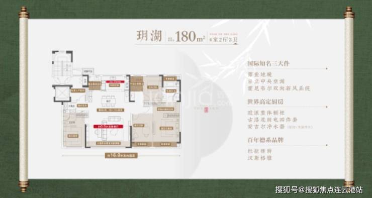 建面 180㎡的四居室分布于 37#、33#、25#、20# 等楼栋,1 梯 2 户设计,保障业主居住私密性。层高 3.15 米,总楼层 6 - 7F,空间开阔舒适 。价格区间在 480.0 - 550.0 万,户型结构为平层,朝向南北,采光通风俱佳。户型布局合理,客厅宽敞明亮,连接景观阳台,可饱览室外美景;卧室舒适静谧,主卧套房设计,配备独立卫浴与衣帽间,彰显主人尊贵身份。
