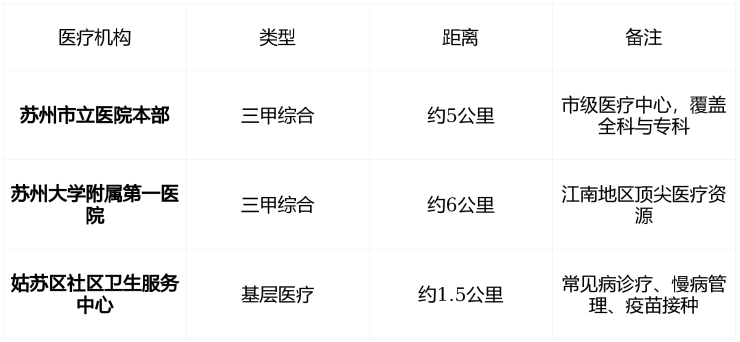 医疗资源依托姑苏主城成熟体系,三甲医院10分钟车程可达,健康保障坚实。
