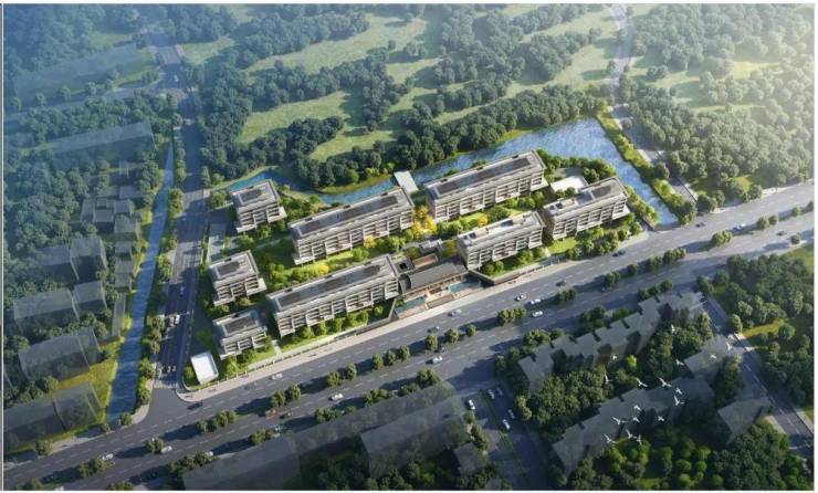 项目分为8栋4-6层纯叠墅构成社区主体,分为4叠与6叠两种产品形态,户型面积约190-240㎡。建筑采用香槟金铝板+玻璃幕墙+干挂石材外立面,以极简线条勾勒宋式飞檐翘角,与周边水巷园林形成"新而中"的视觉对话。