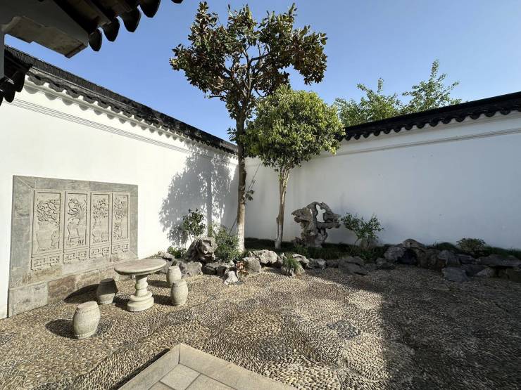 小区内设风雨连廊、小桥流水,由“香山帮”非遗团队打造,每户含1-3亩私家庭院,呈现一院一景的苏式园林美学