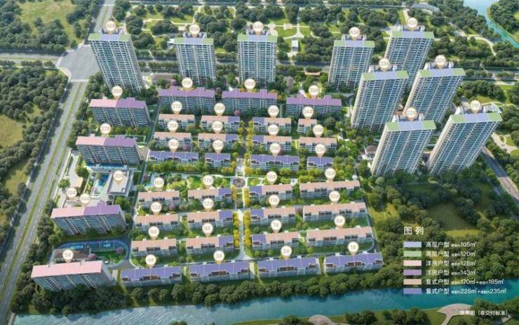 交付标准:高层精装(中央空调+新风)、洋房精装三大件、叠墅毛坯