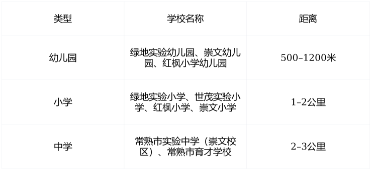 地铁 :距 常熟站 约1.1公里(步行15分钟),可直达苏州、上海方向,通勤效率高。
