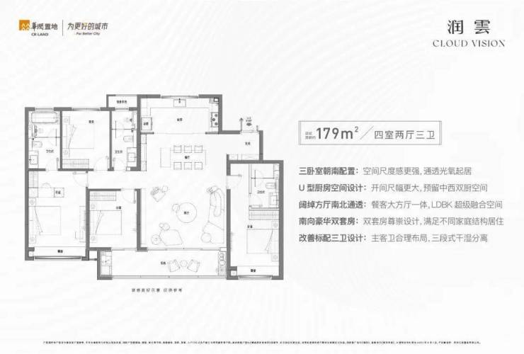 建面约179㎡臻稀洋房户型,是奥体板块内稀缺洋房业态,也是润云拥有最多可变空间、最多生活可能的户型!