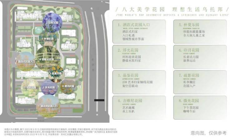 润雲依托原有的地形与生态基底,同频印象派画家莫奈的艺术审美,打造了“四季有花,移步异景”的八大景观体系。印月花园、仲夏乐园、吉维尼花园、品鉴花园、疏影花园、浮光花园、微光花园,N种交互场景,遇见流光,艺术即是生活本身。