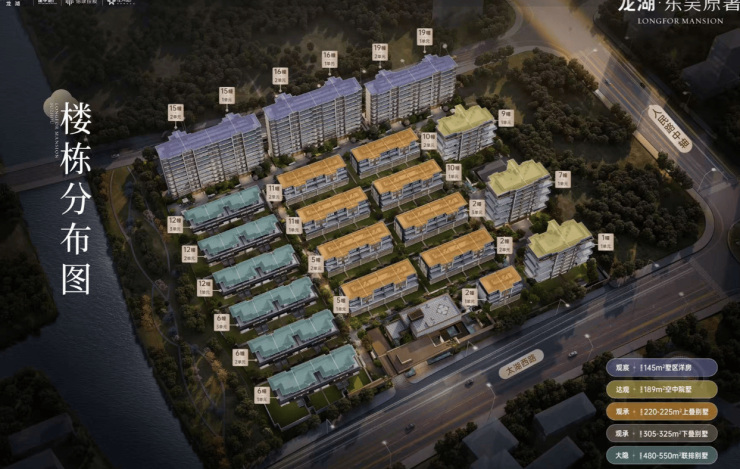 产品特色 :建筑风格融合现代与古典元素,强调低密度与私密性,规划21栋住宅,包括6栋联排别墅(约305㎡)、9栋叠拼别墅(约205-220㎡)及6栋洋房(约145-189㎡),部分洋房设计为第四代空中院墅,创新性强。