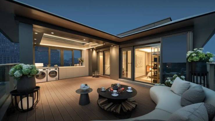 以建面约265㎡的下叠为例,"垂直墅居"理念重构生活场景,近约214㎡的庭院面积超乎想象!