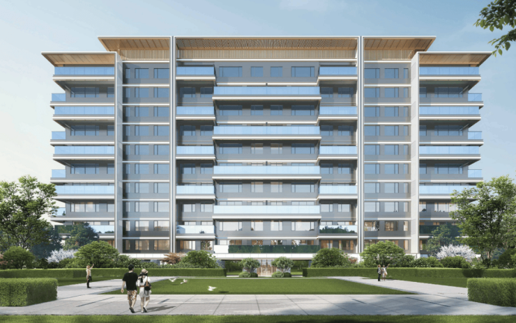 四代宅洋房:建面约156-190㎡,奇偶错层露台设计,户户享空中庭院,精装交付标准含中央空调、新风系统。