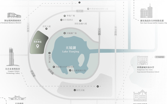 稀缺湖景资源:天镜湖一线临湖,低密社区规划