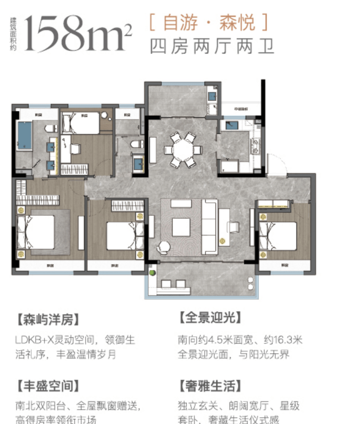 户型图:苏州澜悦溪云的户型设计合理,实用性强。洋房得房率约82%-84%,空间使用最大化;四房起步,满足家庭不同阶段的居住需求。