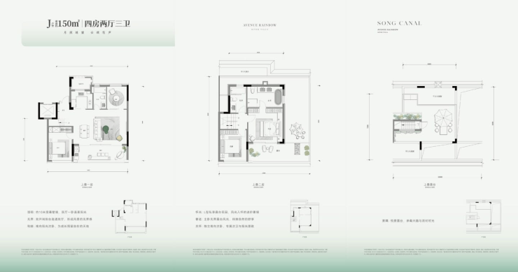 叠墅产品:建面约136–178㎡,总价400万起,主力户型为四居,涵盖上叠、中叠、下叠三种类型: