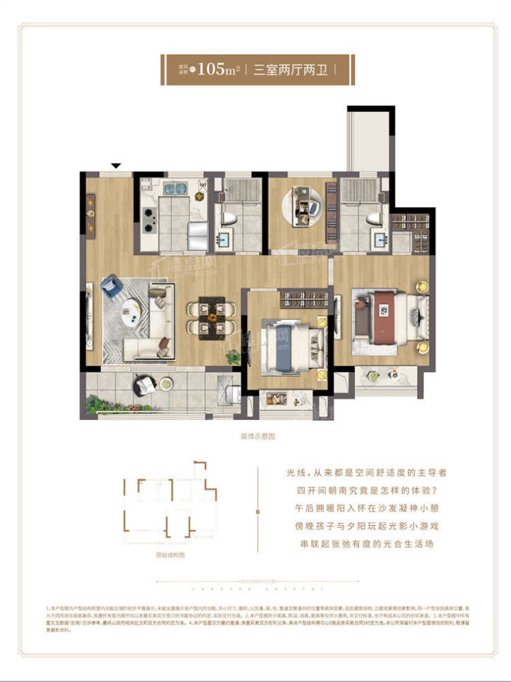 105㎡三居:精装交付,总价310万-330万,单价约2.95万-3.0万元/㎡