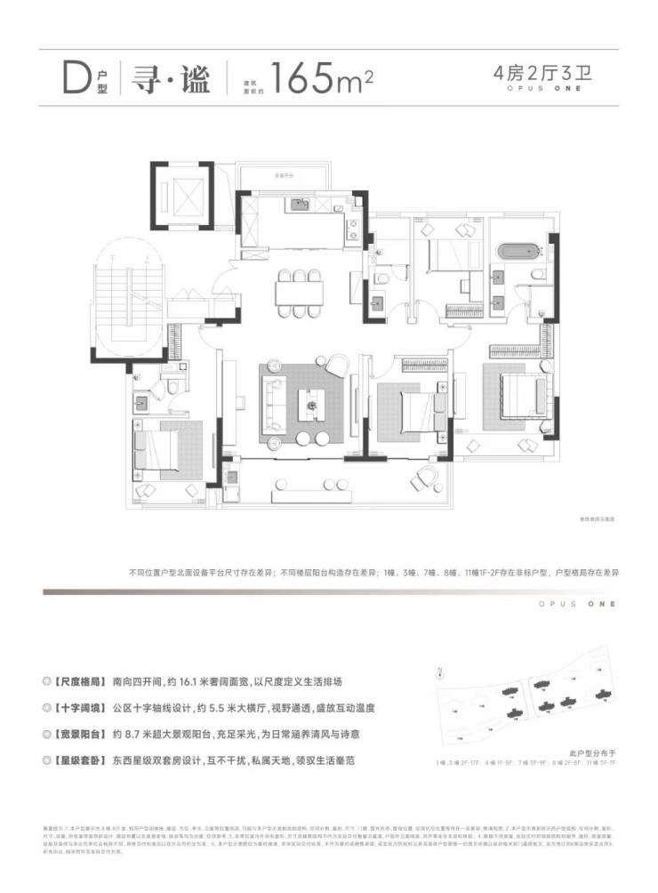 【建面165㎡4居】500.0-630.0万-分布于4# 3# 11# 7# 等,1梯1户,层高2.95米,总楼层7-17F