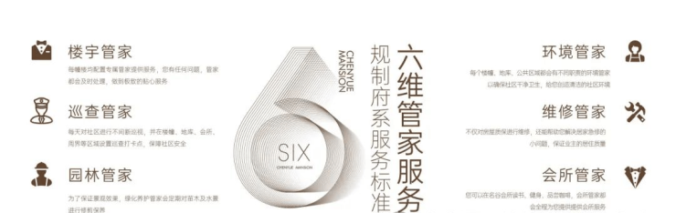 依托于专业服务豪宅的管家团队,宸樾府为业主提供了六维管家服务以及八大智能系统,契合每一位府居人物的生活愿景,全面营造尊崇优越的生活方式。