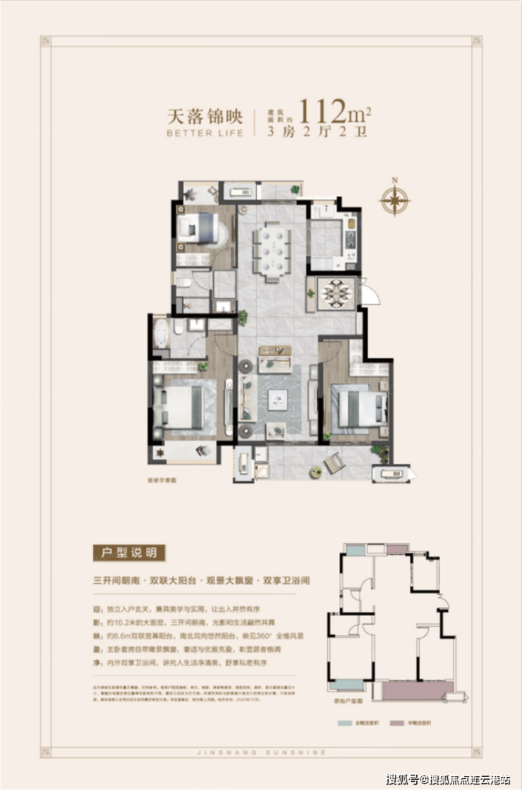 112㎡三室两厅两卫:总价约150万/套(毛坯)