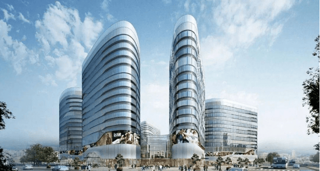 建筑形态:由上海日清设计,打造围合式“水晶天幕”楼宇,外立面采用浅色铝板与玻璃幕墙,融合宝格丽酒店风格,强调现代美学与实用性