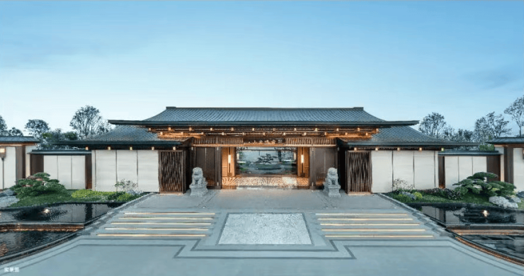 园林设计融合“晓风禅院”“蝶翠禅院”“林泉曲院”“山水雅庭”四重意境,水系蜿蜒、廊亭错落、假山叠石、名贵绿植点缀。