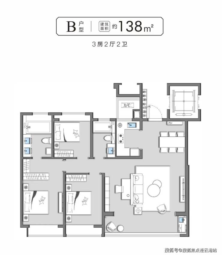 【建面138㎡3居】240.0-250.0万-分布于36# ,2梯3户,层高2.95米,总楼层29F