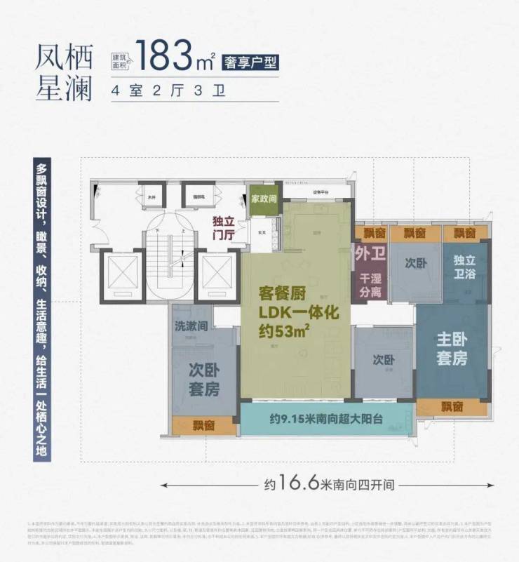 销售信息:建筑面积约128~183㎡的改善性住宅,规划427户,全17F小高层,一梯一户