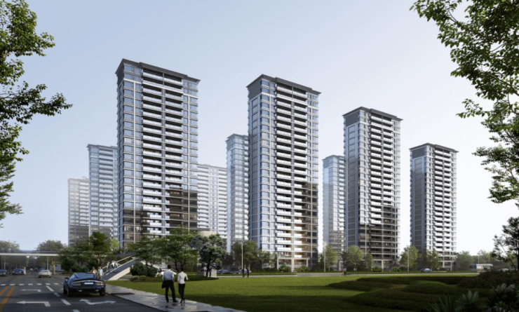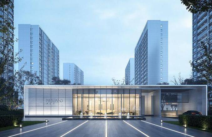 外立面上更是向一线城市的住宅外立面看齐,现代感十足的大面积玻璃幕墙+顶层屋檐设计,时尚感十足。
