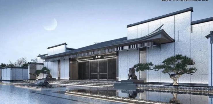 整体采用现代材料呼应中式的白墙灰瓦,造价不菲,这诚意够够的~