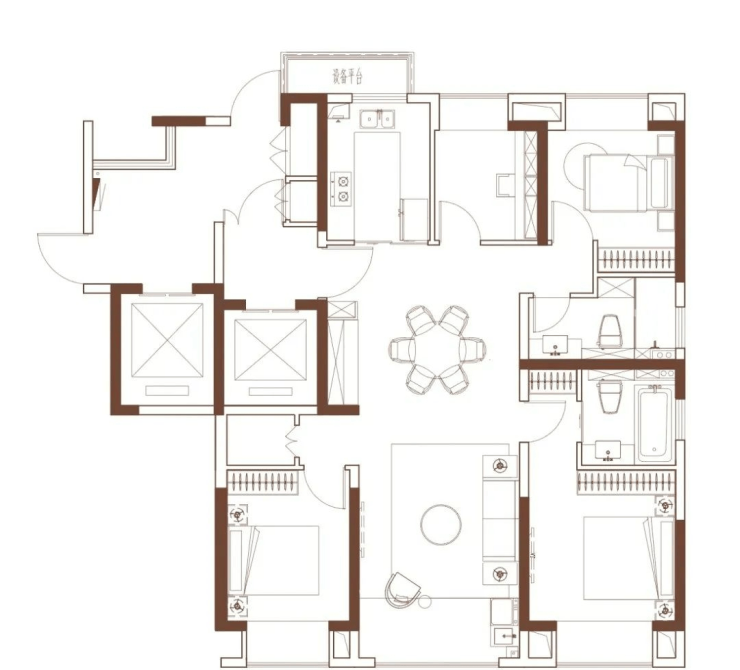 143㎡四居室:总价229万起,三卫设计,宽境横厅