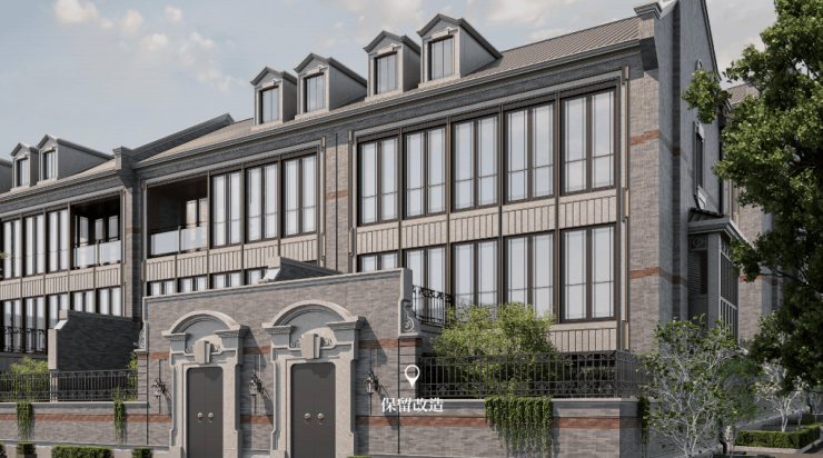 产品:建面约260-300㎡纯风貌别墅;地上2-3层+挑高地下室,实用面积超150%(约455-600㎡);每户附赠15-60㎡私家庭院、观景露台,地下挑高空间可改造家庭影院/酒窖/藏品室,外立面采用手工凿毛石材、红砖及铜质线条,复刻海派石库门经典肌理。