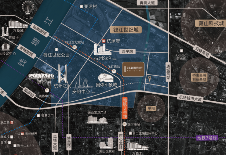 【中天海威·奥语拾光】位于钱江世纪城,未来总部基地启动区。未来将与奥体印象城、SKP、潮启世纪中心(约150米地标综合体)形成商业聚合效应,成为三公里内社区消费配套之一,集餐饮,休闲,娱乐为一体,形成强大的核心消费圈。
