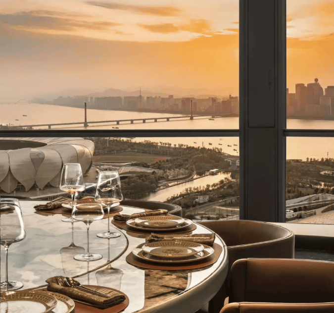 23-24米弧形落地窗,IMAX级无遮挡视野,钱塘江呈完全水平线贯穿。