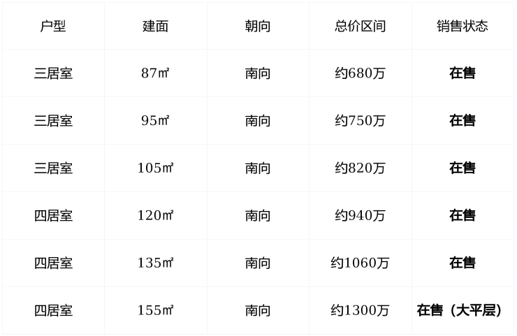 💡95–105㎡三房为成交主力,总价门槛在中环内极具穿透力,适合首次改善家庭与科技生活追求者。