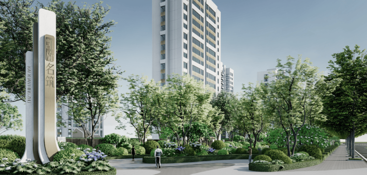 社区内部景观:项目容积率2.3,绿化率35.1%,规划“两线、七园”景观,包括形象花园、凝水花园、悦动花园、漂浮花园、樾水花园、浮光花园、若水花园,将现代、自然、沉浸、艺术、隐奢五个维度有机交融,浓缩臻美自然,营造宜游宜赏的情境花园。最大楼间距约114米,确保每户采光与私密性,营造出“低密、通透、有呼吸感”的居住氛围^。