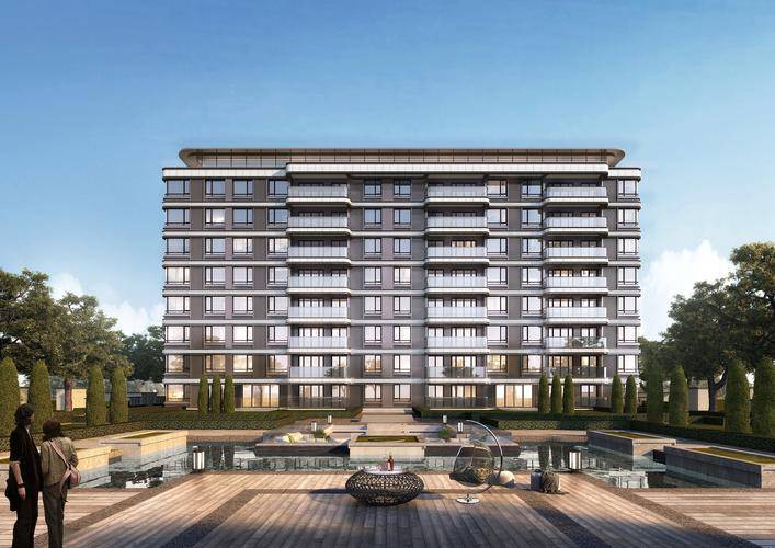 。项目融合现代简约与江南园林风格,外立面采用浅青灰色真石漆与木纹格栅,楼间距最大达65米,精装交付标准包含方太厨电、智能安防系统等